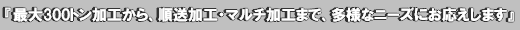 弊社プレス事業部門では、創業以来培った技術とノウハウで、大規模大量加工から 小規模精密加工まで、高品質な製品をご提供することが可能です。 お客様のニーズを伺い、最適な製造プランを検討させて頂きますので、以下連絡先 までご用命下さい。 椛蛻齔サ作所プレス事業部 TEL : 06-6745-1802 FAX : 06-6745-1803